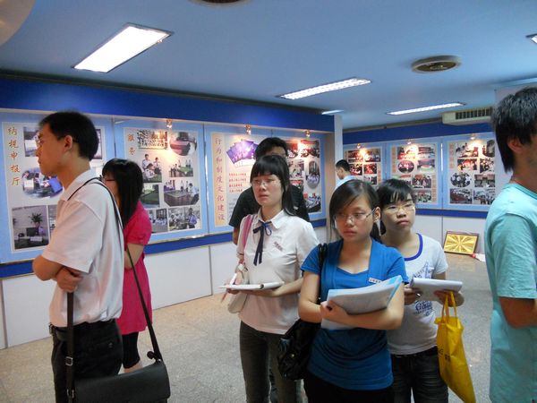 在文化展厅,税局工作人员介绍了市国税局建设的战略目标和文化建设的理念和方向。文化展厅的图片为同学们展示了税局当前的文化建设目标、方向和成果。一张张照片体现了税局人员文化活动的每个难忘的瞬间,展板记录了三明市国税局十年建设的心路历程。