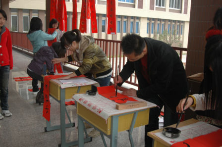 师生写春联 新年送祝福―经济管理学院书法协会举办送春联活动