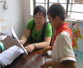 参加实践的第一天,我和帮扶队的长辈们一起拜访村里的留守儿童,了解他们的学习生活情况,并表达了要组织所有的留守儿童在一起学习,为他们进行学业辅导的想法。很多孩子的家人都对我们的义务支教行动拍手称赞。一番走访下来,共有二十几名学生参加了我们的支 【帮扶队的大姐在为留守儿童指导学业】