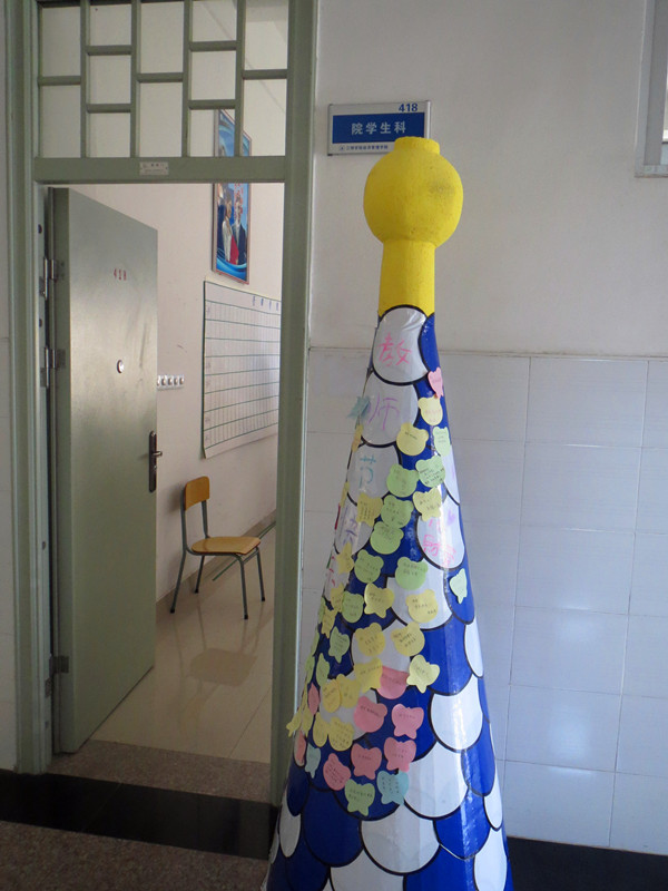 办公室门口设立了为老师送祝福的留言板,“老师,您辛苦了”、“师恩如海深”、“老师,感谢你们的教诲”等一张张便利贴,写下了同学们的浓浓情意,每句话都透露出同学们对老师的感恩之心。