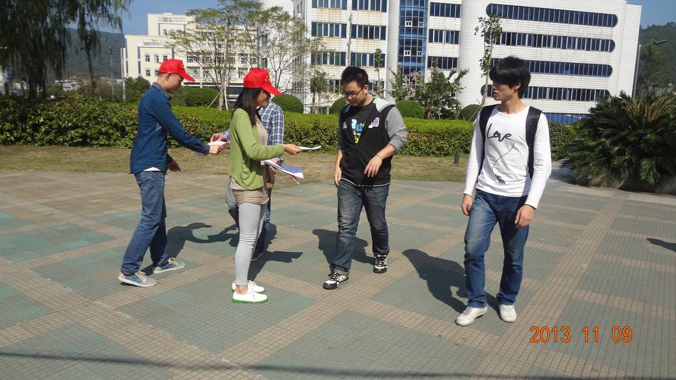 向过往的同学发放宣传单