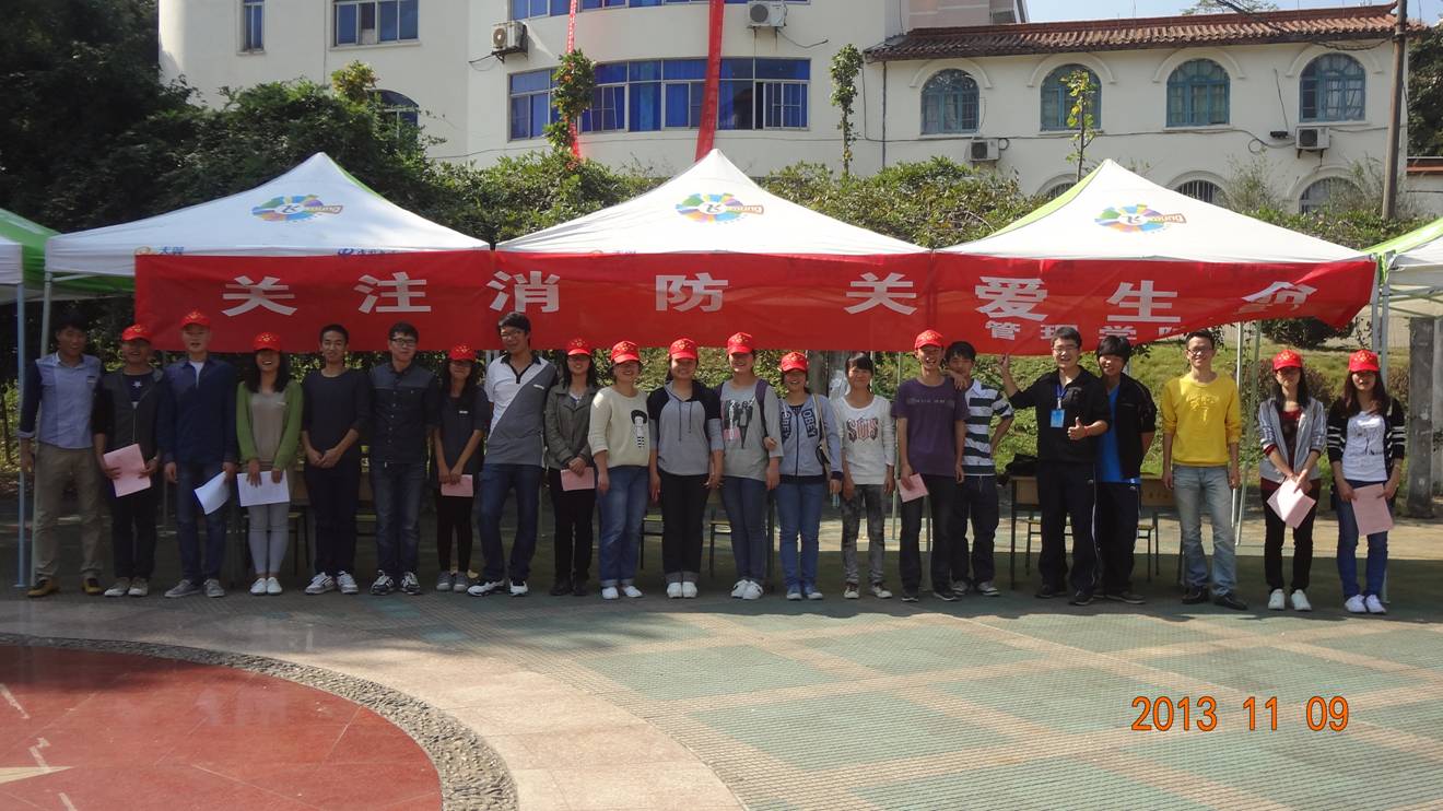 11月9日上午管理学院学生会携手青年志愿者协会于南区荷花池举办“关注消防,关爱生命”消防宣传日活动,管理学院学生积极参与其中。