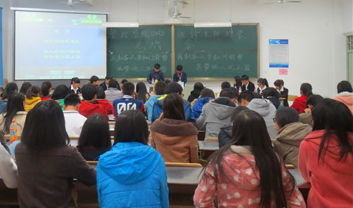11月28日晚,以“社会公德建设”为主题的管理学院2013年新生辩论赛于厚德楼404教室精彩上演。经过激烈角逐最终崭露头角的两支队伍――2013级财务管理一班(正方)与管理学院辩论协会代表队(反方)在此一决雌雄,管理学院团委负责人、辅导员及学生代表到场观看。