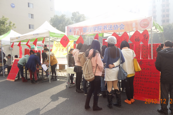 ,管理学院爱心基金协会、辩论协会、墨缘书法协会、青年志愿者协会携手举办的元旦嘉年华活动在厚德楼前拉开帷幕。
