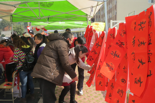 帐篷前“福”字的新春气息冲淡了冬日带来的寒冷,吹乒乓球、辩论赛、志愿者知识有奖竞猜以及写春联等活动,吸引了过往同学们驻足参加。此次社团嘉年华是以玩游戏收集各个协会的印章换取礼品或新春对联的方式打造,受到同学们热烈欢迎。而这次活动不仅有同学们的热情参与,更有老师的友情客串,在墨缘书法协会的大本营下,一位老师当场挥毫写下几个刚劲有力的大字,赢得现场同学们的一片惊呼和赞扬,整个活动现场洋溢着喜悦的气息。