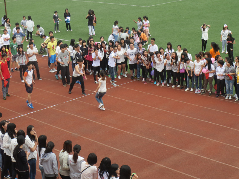 这是一场智慧与合作的比拼,这是一次友谊与团队的彰显。“友谊第一,比赛第二”,秉承这样的理念,管理学院将篮球、足球、跳绳和短跑这四种简单的运动完美结合,设计了8*100米趣味接力赛。各支代表队派出的八名同学分散在跑道的四处,各自以运篮球、颠足球、跳绳跑及百米冲刺的形式完成800米的竞技。赛场上,趣味十足,呼喊声、加油声一阵高过一阵,运动健儿们行动灵活,配合默契,上演着一幕幕精彩。眼看着13级物流管理班的贝学崇同学屏住呼吸,快速移动,像一只猎豹似的冲向终点,俨然成为全场的亮点。团结合作促成功,13级物流管理班以精诚合作与完美配合取得比赛的胜利,引得大家的掌声阵阵。