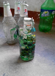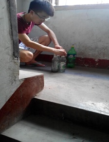 妙趣横生勤动手,妙手回春新应用。来源于学校一位退休老人的启发,潘君凯萌生出废品精加工的想法。他运用网络查阅的方法借鉴先行人士的成功经验。充足的准备后,潘君凯找来剪刀、小刀、胶带等等各种工具,他收集家里将要扔掉的废酒瓶子深加工做成了小饰品。将体积较大的塑料瓶做成了花盆放在了阳台上等等。看着一个个废品在加工后变成精美的艺术品,潘君凯收获了家人的赞扬,加深了他废品重新加工利用的决心。
