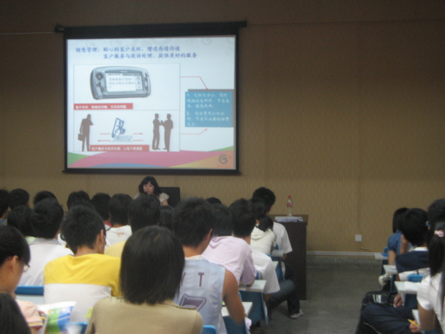 会上,中国移动三明分公司的主要负责人对同学们进行了业务培训,他详细而生动地为我们讲解了营销方案的策划、应对技巧以及推销技巧等,赢得全场阵阵掌声。