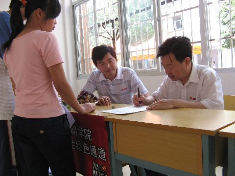 绿色通道的开设旨在帮助家庭经济有困难的学生,通过申请助学贷款,国家助学金以及办理缓缴学费等优惠政策顺利完成学业。院领导对这方面工作十分重视,江芳俊副院长亲自到我系看望新生,并与新生家长亲切攀谈,了解他们的住宿情况等。江副院长说:“来到这里就是一家人了,有什么困难可以跟学姐学长们说,也可以跟辅导员反映。对于家庭经济确实有困难的学生,我们在经过核实之后会给予大家最大的帮助。”之后,江副院长还当场审核了一些学生所递交的申请助学贷款以及缓缴学费的单据。