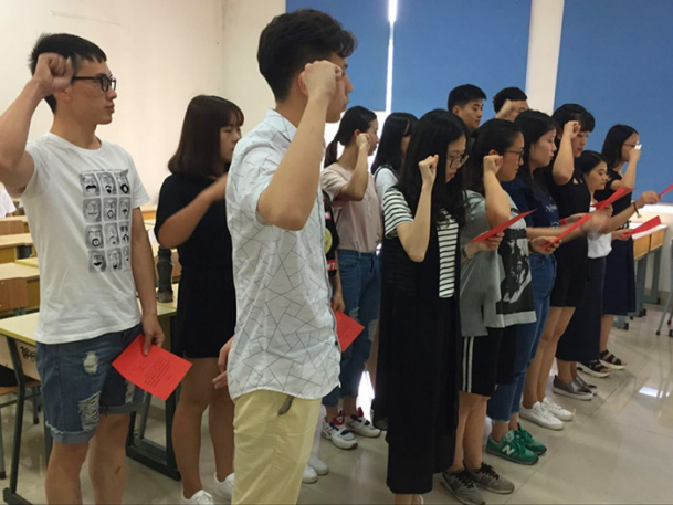 为强化党员的先锋模范意识,进一步激发共产党员的荣誉感和使命感,5月28日下午,在厚德楼201,我院的16名预备党员面对鲜艳的党旗庄严宣誓,度过了激动人心且终生难忘的时刻。