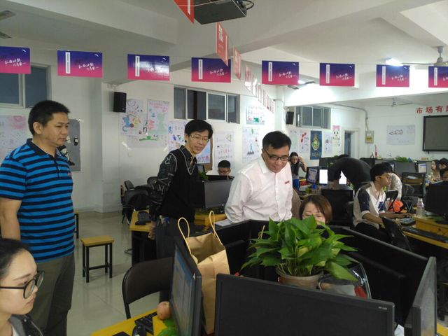 11月13日下午,张君诚副校长、教务处赖祥亮副处长、王红雨副处长等一行深入博学楼3楼,看望参加电商实战的学生们。