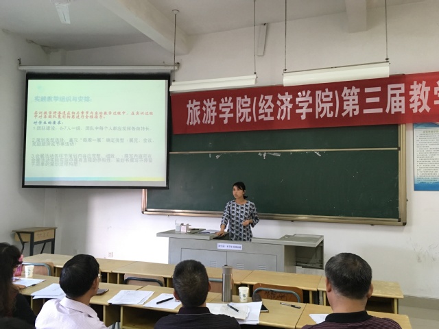 本届教学比武大赛分为预赛和决赛两阶段。第一阶段是由旅游管理系和贸易经济系分别在系内进行预赛选拔,选出教师参加院内比赛。第二阶段是决赛,决赛采取说课的形式,分为说课程(教材)与说章节两个环节,参赛教师分别就该课程的性质、地位、对选用教材的处理以及对于某一具体章节的处理和所运用的教学技巧进行宣讲展示。