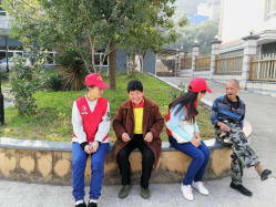 在敬老院中, 同学们一对一和老人聊天解闷,很多老人表示虽然院中也有其他老人但是他们更希望能有晚辈在身边陪伴。看似平常的聊天拉近了志愿者与老人们的距离,让每一位老人都感受到了浓浓的爱意,当看到老人们脸上露出满足的笑容时,所有人也感到无比满足。