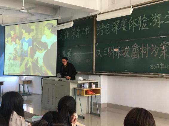为加强旅游学院在马岩生态山庄做研学创新创业团队学生的综合素质,旅游学院于2017年12月21日邀请研学及亲子旅游专家杨佳敏老师带来《本土文化保育工作结合深度体验游学的开展--以三明东坂畲村为案例》的讲座。