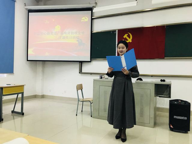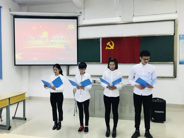为贯彻落实党的十九大精神,严格规范党内政治生活,进一步加强我院学生党员思想道德。同时,积极响应“校风提升”主题月精神,我院学生党支部结合党支部实际,于2017年12月27日,在厚德楼206开展“不忘初心跟党走,品味诗韵颂党情”主题党日活动。