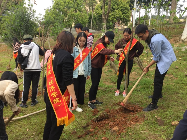 2018年3月13日,为进一步推进“绿色校园”建设,营造良好的学习环境,弘扬全社会植绿、护绿、爱绿的文明新风,旅游学院(经济学院)积极组织师生党员同志开展义务植树活动。