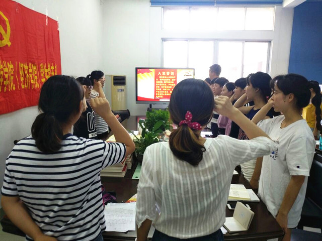 为深刻领会把握习近平总书记“不忘初心,牢记使命”的讲话精神,加强党员的党性教育。活动伊始,全体学生党员面向党旗,心怀敬慕,举起右拳,重温入党誓词。一股股铮铮誓言荡涤回旋,久久不息,激发着党员的使命感和责任感。紧接着,是6月入党的同志借此红色生日之际重读入党志愿书,字里行间,老党员们再一次回忆自己入党的初心,并始终提醒自己保持党性。