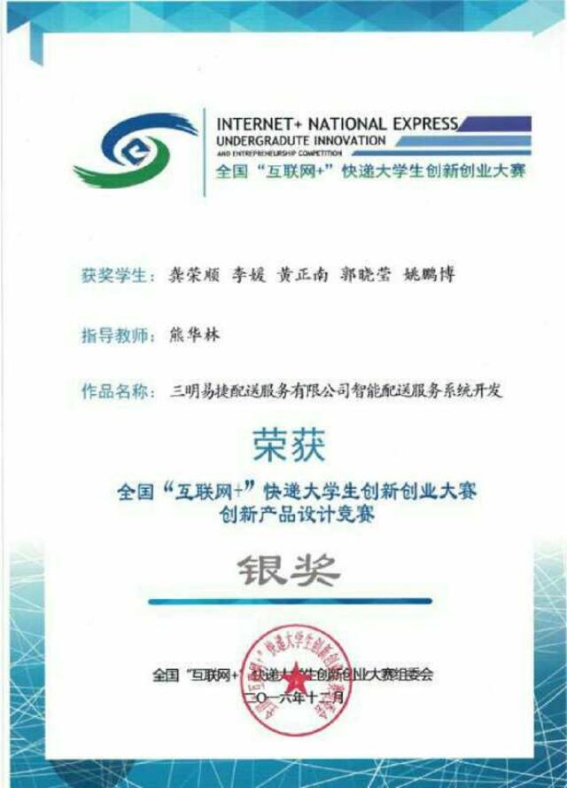 全国“互联网+”快递大学生创新创业大赛我校获银奖