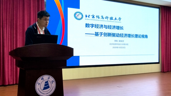 全国数字经济教育发展联盟代表、北京信息科技大学商学院副系主任周烁副教授以“数字经济与经济增长——基于创新驱动经济增长理论视角”为主题,系统阐述了数字经济推动经济高质量发展的逻辑与路径。周教授提出,实现高质量发展的三大着力点:一是强化技术创新,突破前沿与融合领域关键技术;二是推进产业数字化转型,培育新兴与未来产业;三是加快人才培养,塑造创新型人才体系,为建设数字中国和实现可持续增长提供智力支撑。