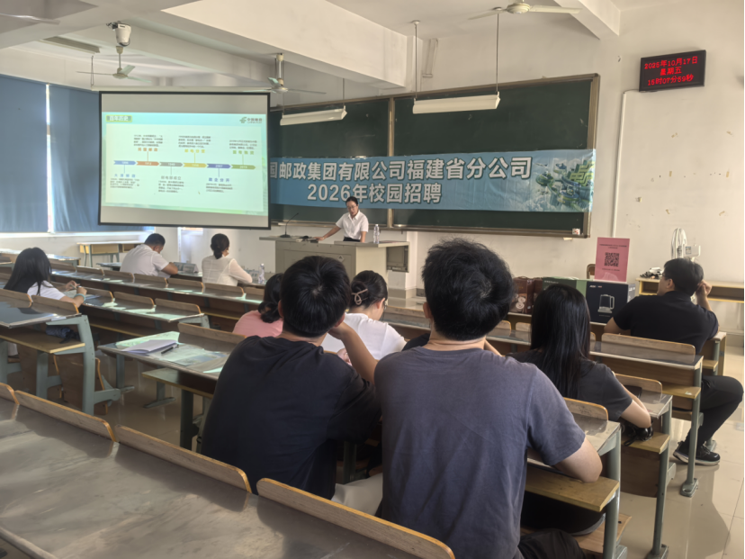 为拓宽学子职业选择、对接优质国企资源。10月17日,经济与管理学院在厚德楼104开展中国邮政集团有限公司福建省分公司2026年校园招聘宣讲会活动,中国邮政代表、优秀校友、数名经管学院学生共同参与本次活动。