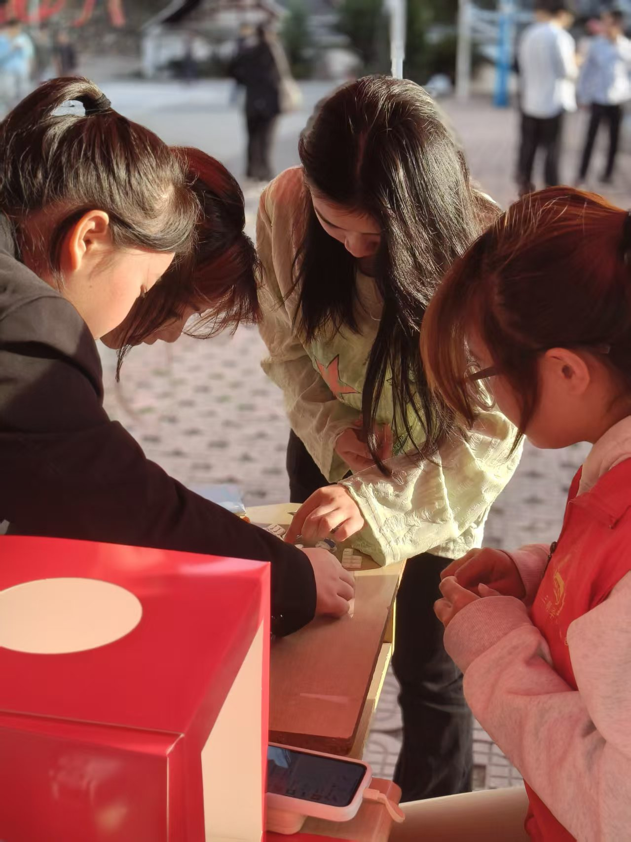 活动伊始,身着鲜艳玩偶服的工作人员以憨态可掬的造型和活泼姿态,迅速吸引了过往学生的注意。现场氛围轻松热烈,不少同学驻足了解活动内容,并主动与玩偶拥抱、合影,用镜头记录下一张张灿烂的笑脸。互动中,陌生感悄然消融,心灵在欢声笑语中彼此靠近。明信片互动区同样人气高涨。同学们静心书写对未来的期盼或对他人的祝福,投入互换箱,并抽取陌生同窗的留言。笔墨传情,搭建起一座跨越隔阂的情感桥梁。活动尾声,参与者有序领取了精心准备的小礼品,笑意洋溢。