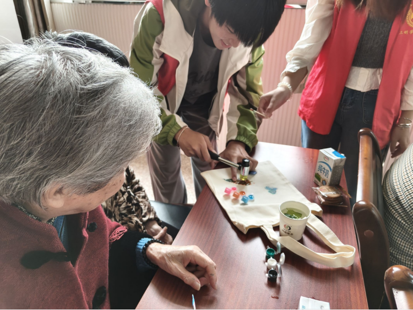 为传承中华优秀传统文化,弘扬尊老敬老的传统美德,丰富长者精神文化生活,11月2日,经管学子在三明国德养老院举办了一场别开生面的“植物拓印”非遗体验活动。二十余位老人在志愿者的协助下,用创意巧手制作出蕴含秋意和吉祥寓意的个性化布袋,传递浓浓节日情意。