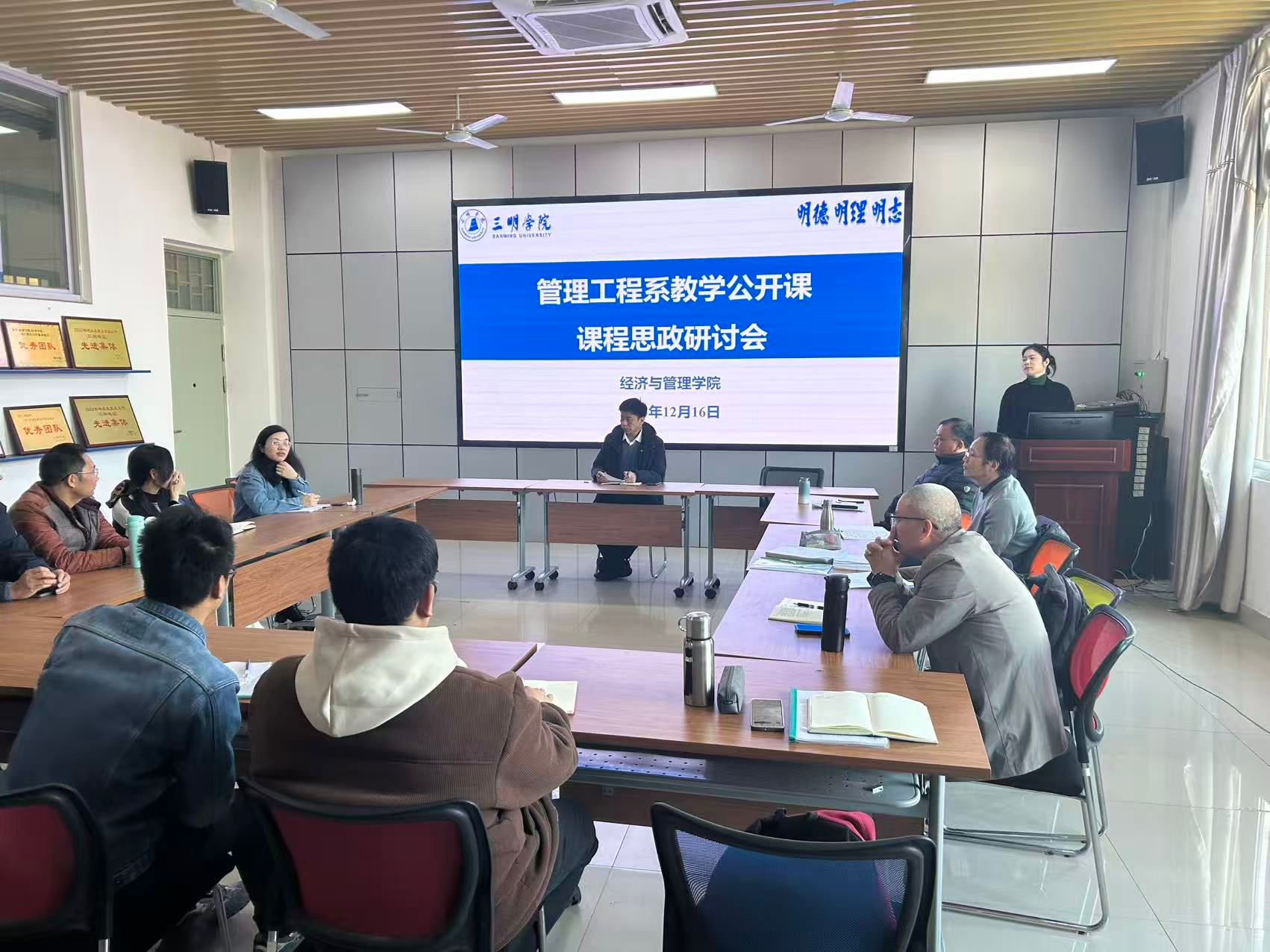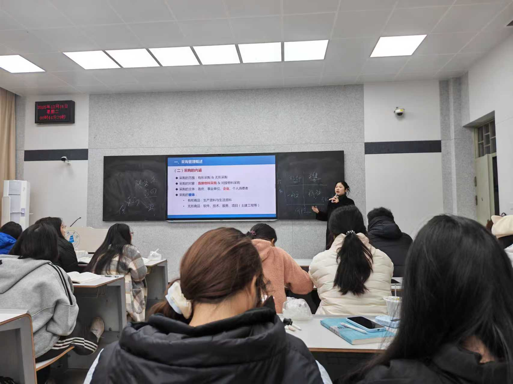 研讨会以一堂生动的专业公开课拉开序幕。肖鸿老师为2025级供应链管理专业大一学生讲授《供应链管理》中的“采购管理”模块,巧妙融入三明地区产业案例。办公室行政人员、教学科管理人员、实验室技术人员及辅导员一同观摩,从不同角度观察课程思政的实施效果。