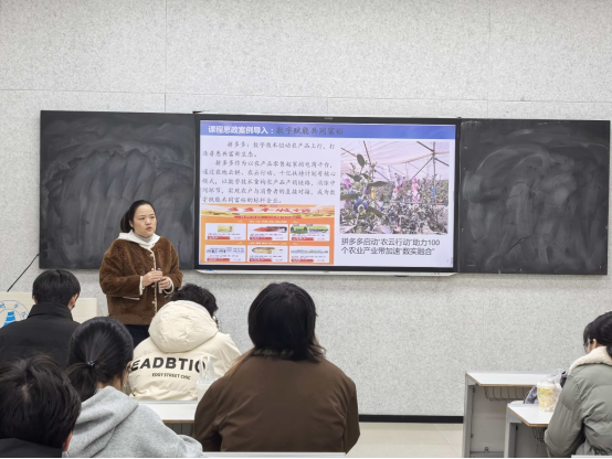课堂教学中,授课教师以“数字赋能共同富裕”为课程思政切入点,选取拼多多“农云行动”等典型案例,生动展示数字技术如何重构农产品产销链条、推动农业产业数字化转型、助力农民增收致富。通过案例分析、问题引导与政策解读相结合的方式,引导学生从产业政策视角理解数字经济运行机制,深入认识数字经济产业政策在促进数实融合、优化资源配置、缩小城乡差距中的重要作用,使专业知识学习与价值引领实现自然融通。