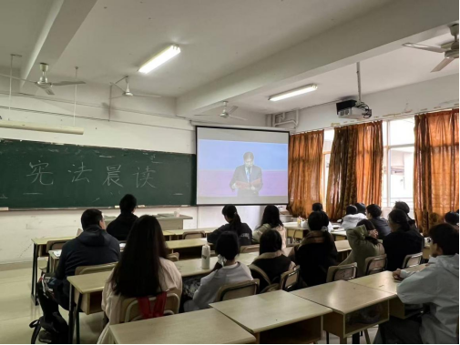 开展宪法晨读活动,全体学校师生于12月4日8:40-9:00 在博学楼210进行宪法晨读,由协会成员带读宪法部分条款,现场学生跟读。9:00-10:00登录教育部全国青少年普法网收看网络直播。