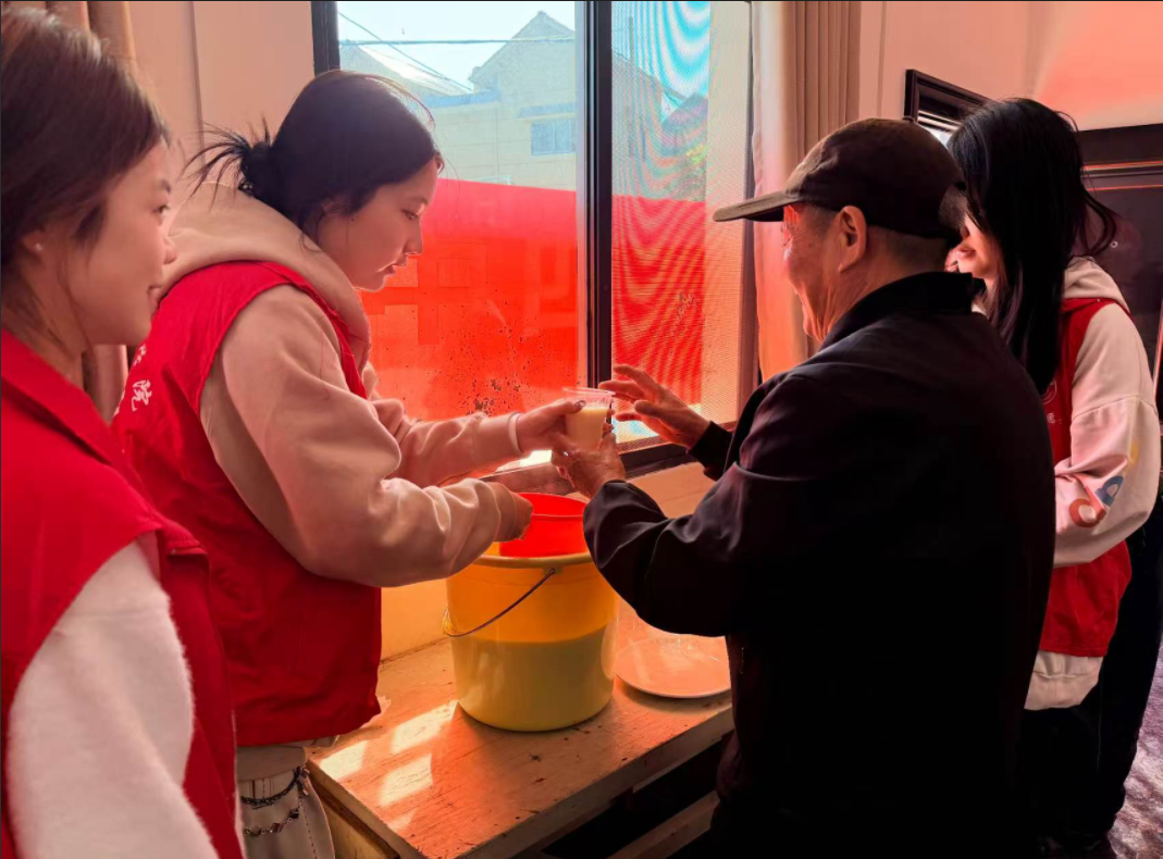 情暖敬老院,陪伴暖人心。志愿者们走进村落开展擂茶文化宣讲与实践活动。邀请当地长辈现场指导,详细讲解擂茶历史、原料搭配与保健功效,演示制作全流程,并邀请村民动手体验。在互动交流中,让传统擂茶文化深入人心,助力乡土民俗传承与乡村文化振兴。大家围坐在一起唠家常、听故事,用耐心陪伴驱散老人的孤独。精心准备的文艺节目赢得阵阵掌声,欢声笑语让敬老院充满温馨,传承敬老爱老的传统美德。