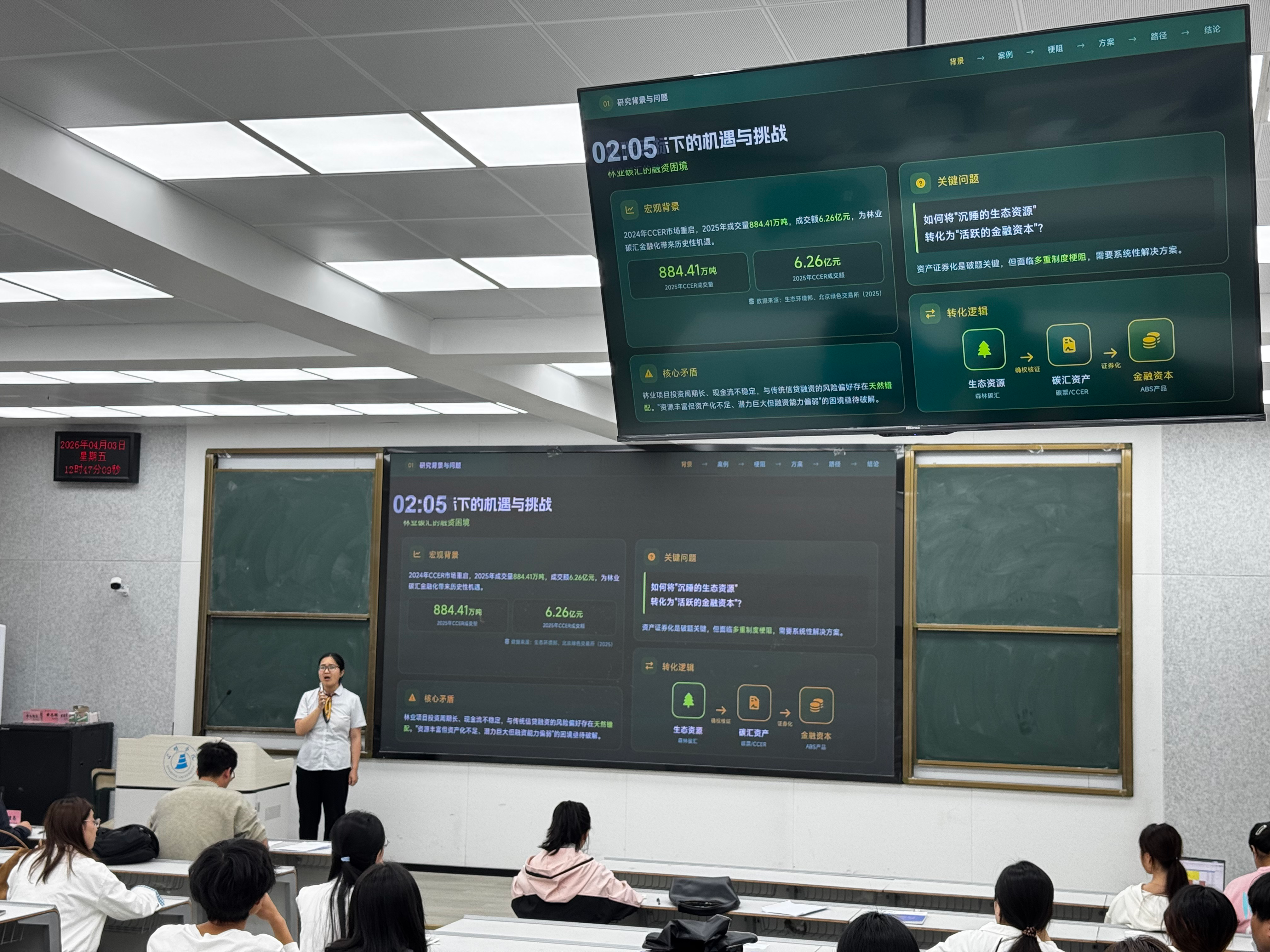 经过前期严格评审,共有26支优秀团队成功入围本次校赛决赛。决赛采用现场路演形式,分两组在厚德楼104教室和204教室同步进行。各参赛团队围绕能源经济、绿色低碳发展、碳达峰碳中和等热点议题,结合数据建模、案例分析和方案设计,展示了丰富的研究成果和富有创意的解决方案。