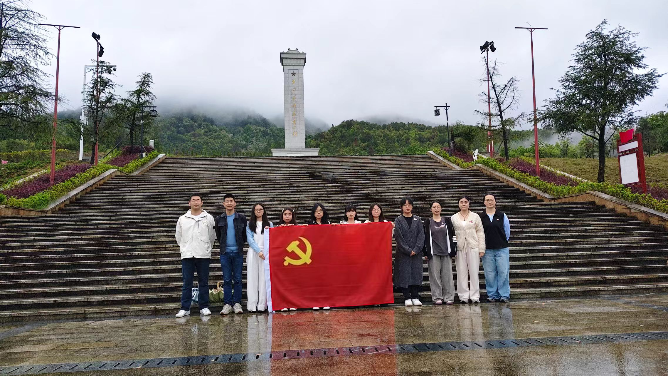 尽管遭遇降雨,师生党员们以实际行动诠释了对革命先烈的崇高敬意,不仅修复了烈士墓碑,维护了纪念设施的庄严肃穆,更在风雨中厚植了爱国主义情怀,彰显了新时代青年的责任担当。