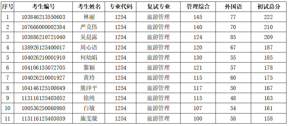 三明学院经济与管理学院旅游管理专业2026年硕士研究生调剂复试名单(第一批)