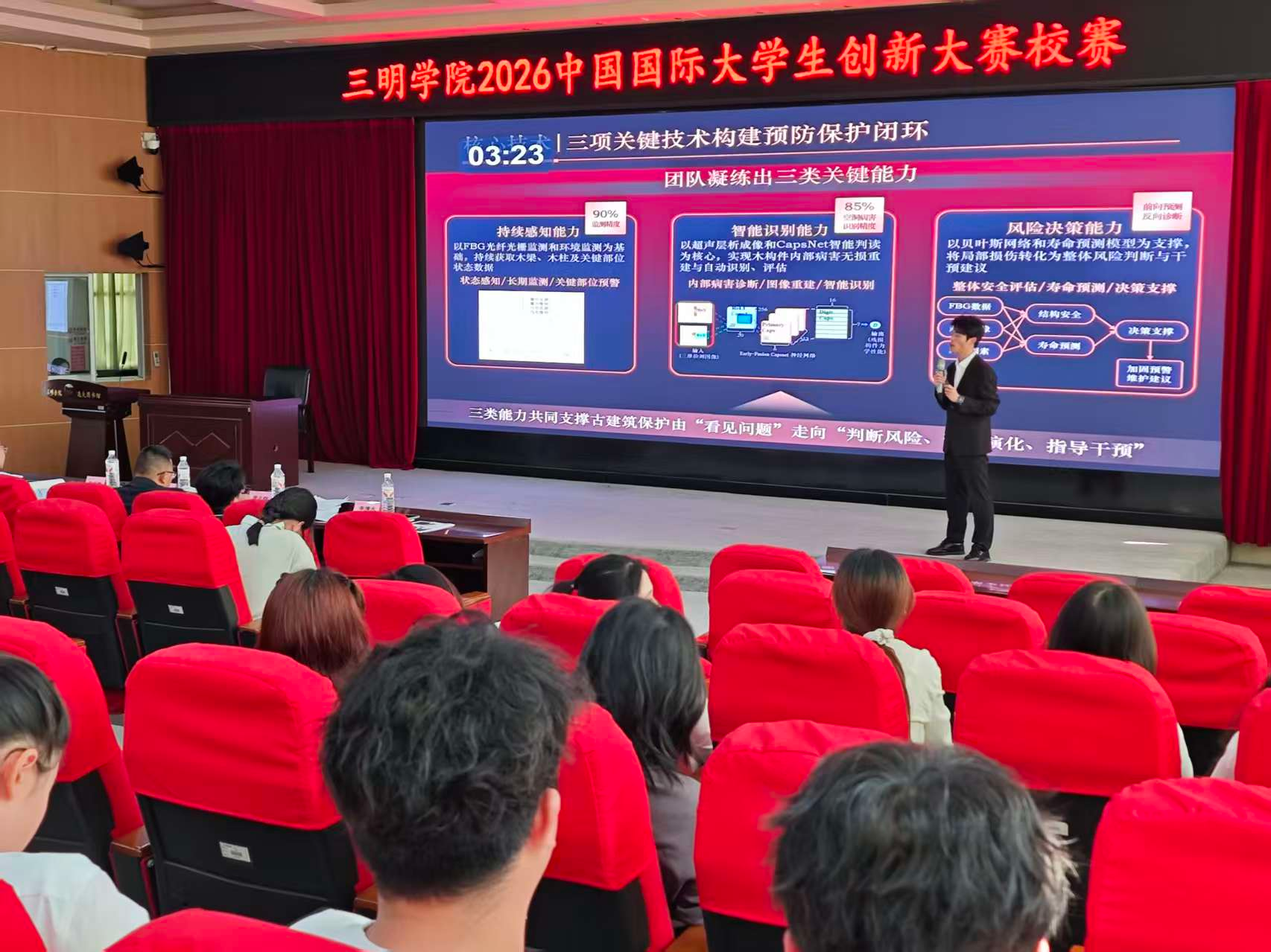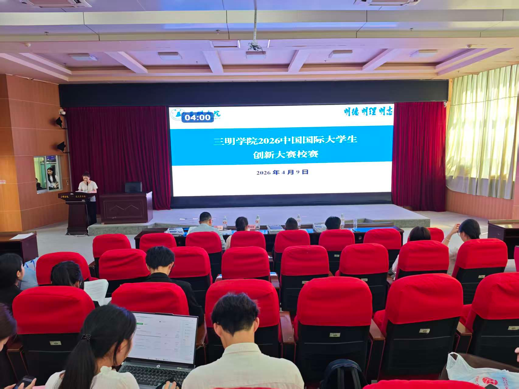 4月9日下午,三明学院中国国际大学生创新大赛(2026)校赛决赛在图书馆学术报告厅顺利举行。本届校赛由经济与管理学院承办,经校内初审,共有30个项目入围校级比赛,其中排名前20的项目进入现场路演环节。